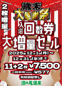 1年間の感謝を込めて、 歳末「入浴回数券 大増量セール」 を開催いたします!